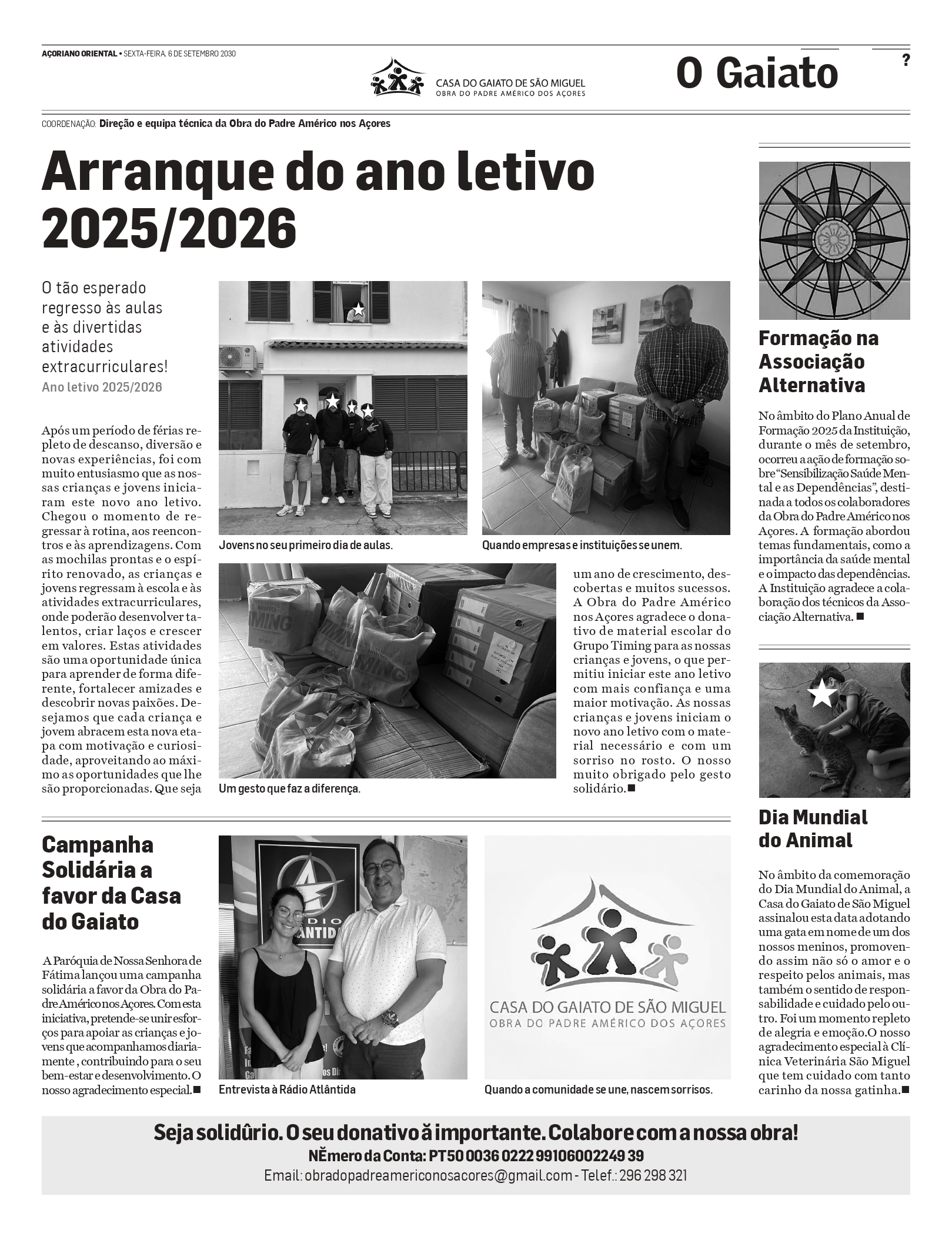 A Casa do Gaiato de São Miguel rege-se pelos princípios e valores expressos nos seus Estatutos, no Regulamento Interno e pelas orientações emanadas do Instituto de Segurança Social dos Açores, entidade financiadora ao abrigo de um Contrato de Cooperação -Valor Cliente.