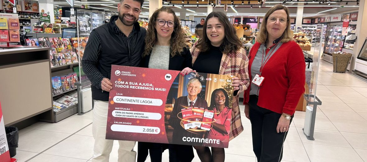 Graças ao êxito da campanha de Natal 2024 da Missão Continente, no passado dia 31 de janeiro, a Instituição recebeu um cheque simbólico que foi angariado pela loja Modelo Continente, do concelho da Lagoa. O valor doado pela Missão Continente será entregue sob a forma de um cartão – Cartão Dá Apoio. Trata-se de um cartão que serve para fazer compras nas lojas Continente. À semelhança do ano 2023, a Casa do Gaiato de São Miguel foi contemplada por esta campanha e enaltecemos a iniciativa e expressamos a nossa gratidão.